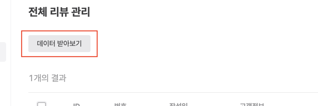 - ⚠️ 개인정보 열람 권한'이 없는 계정은 '데이터 받아보기' 메뉴가 노출되지 않습니다. 계정 내 '개인정보 열람 권한'의 기본값은 ON입니다. 권한 재변경이 필요하실 경우, 리뷰 운영팀으로 권한 부여를 요청해주세요.