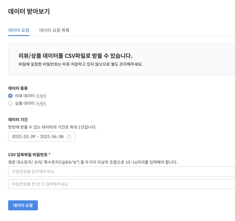 리뷰/상품 데이터를 CSV파일로 받을 수 있습니다.