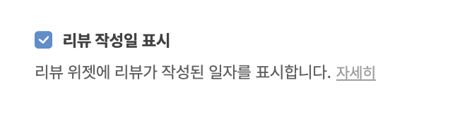 위 경로에서 리뷰 작성일 표시를 해제하면 위젯 내 리뷰 작성일이 미노출 됩니다