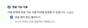 위젯에 댓글 노출이 필요한 경우, 위 경로에서 댓글 기능 사용을 체크합니다.