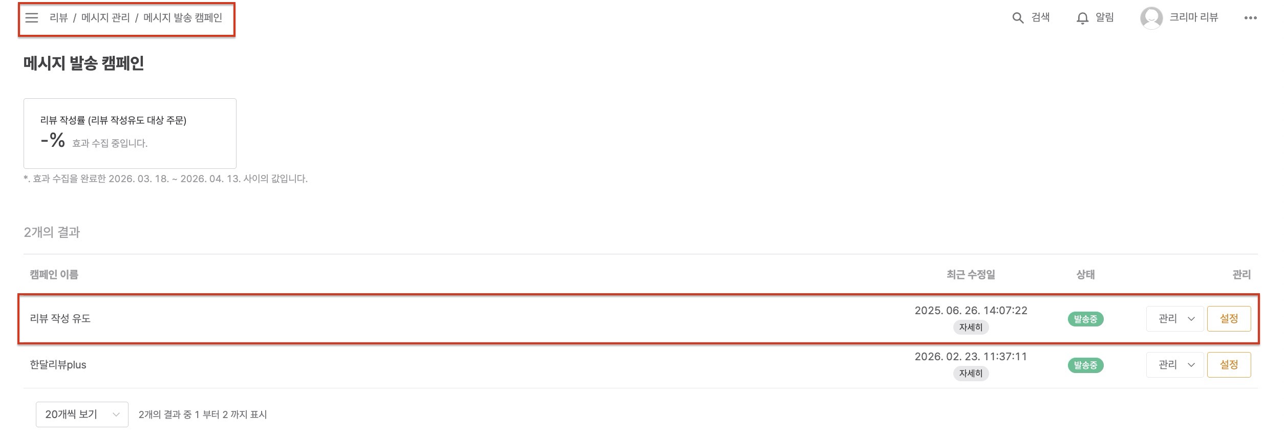 크리마에서 제공하는 기본 메시지 템플릿과 직접 생성한 메시지 템플릿 중 선택하여 사용할 수 있습니다.